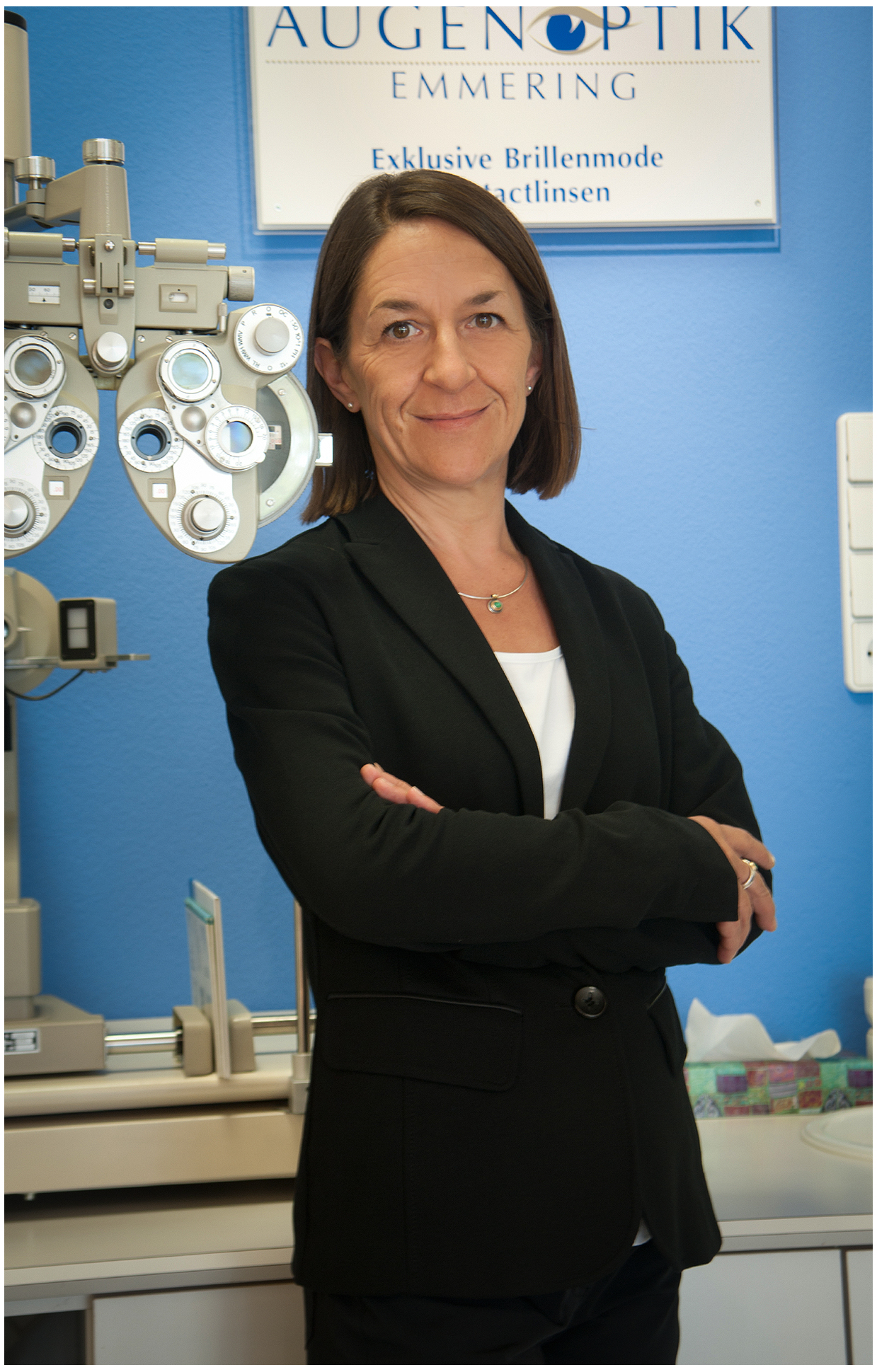 Ein klassisches Portrait vor neutralem Hintergrund ist zeitlos – vor Ort gewinnt man jedoch zusätzliche Ebenen. Die Umgebung liefert automatisch Kontext: Brillenwand, Messgeräte, Beratungstisch und Spiegel. Wichtig ist, dass der Raum aufgeräumt wirkt und das Licht die Person freundlich modelliert. Das kann mit sauberem Tageslicht, gezieltem Aufhellen oder kleinen Blitzen im Raum funktionieren. So entsteht ein professioneller Look, der trotzdem echt bleibt. Gerade in Dienstleistungen ist das ein Vorteil, weil Besucher sofort verstehen: Hier wird seriös gearbeitet, hier bin ich richtig.